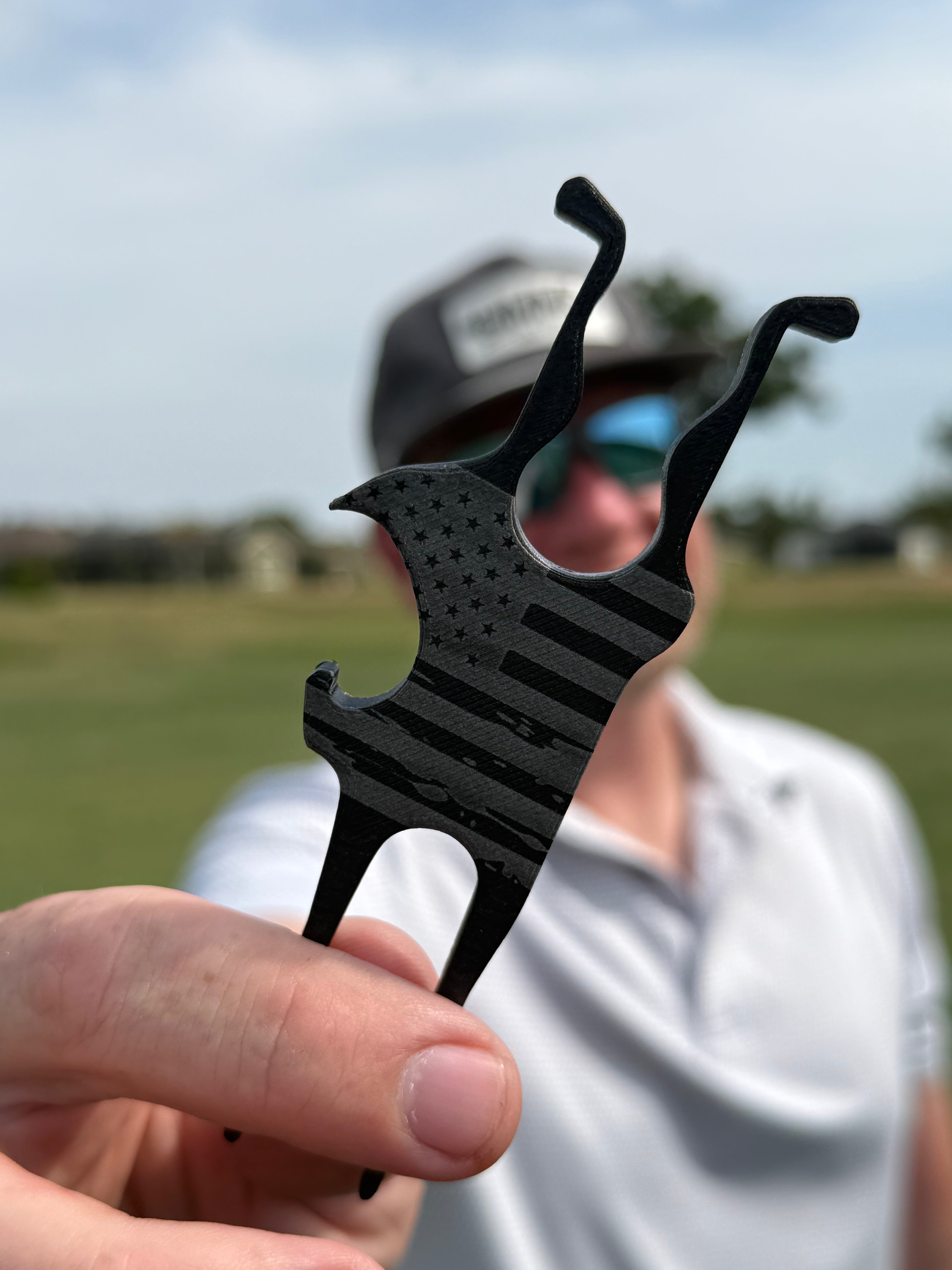 Here's where the Gimme Golf Tool comes in. While walking up to the green after an amazing shot on the signature par 3 over the water, I proceeded to fix my ball mark (always a rewarding experience) and there it hit me. I needed a tool, that did my favorite golf task, and solved the problem with our cigars, shotguns and ball marks. I didn't want to have a bunch of accessories for all of it, I wanted one tool that got the job done, and was something I needed for golf anyway. Nothing bulky, something sleek that I could stick in my pocket or store in my golf bag.